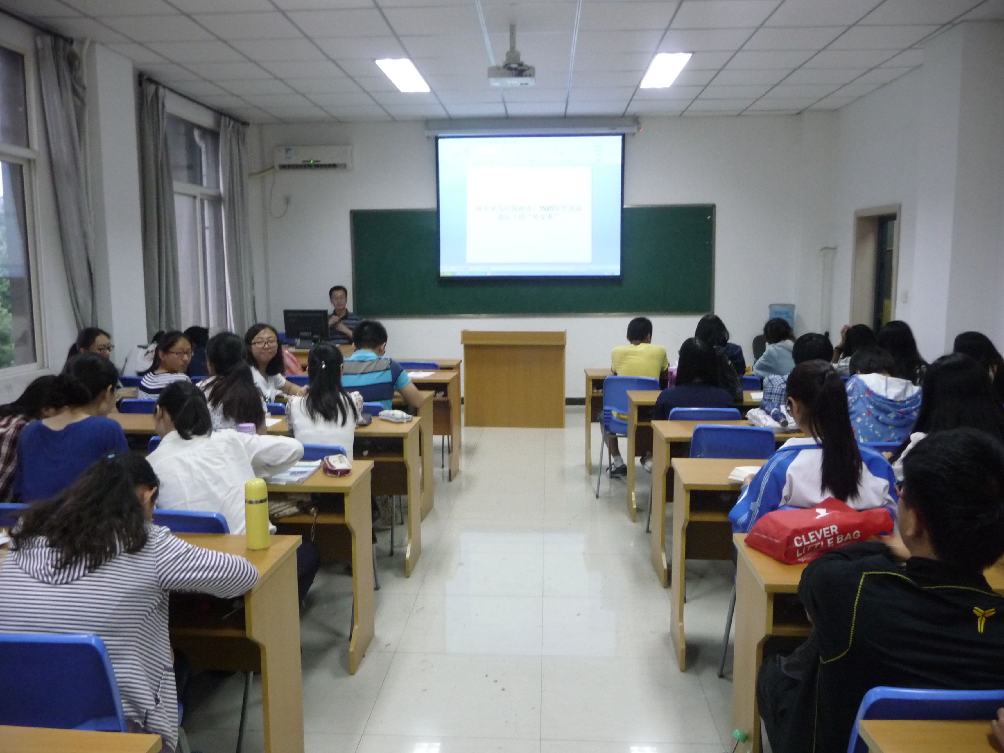 这场讲座吸引了硕士生、本科生的各年级学生,晚七点整,讲座准时开始,罗毅老师以幻灯片形式首先向大家介绍了派系林立的民国北京,随后步入主题,就“外交系”的含义、代表人物、其产生的历史条件与机缘进行系统介绍,并对外交系的本质和与实力派之间的关系进行简明扼要的阐释。