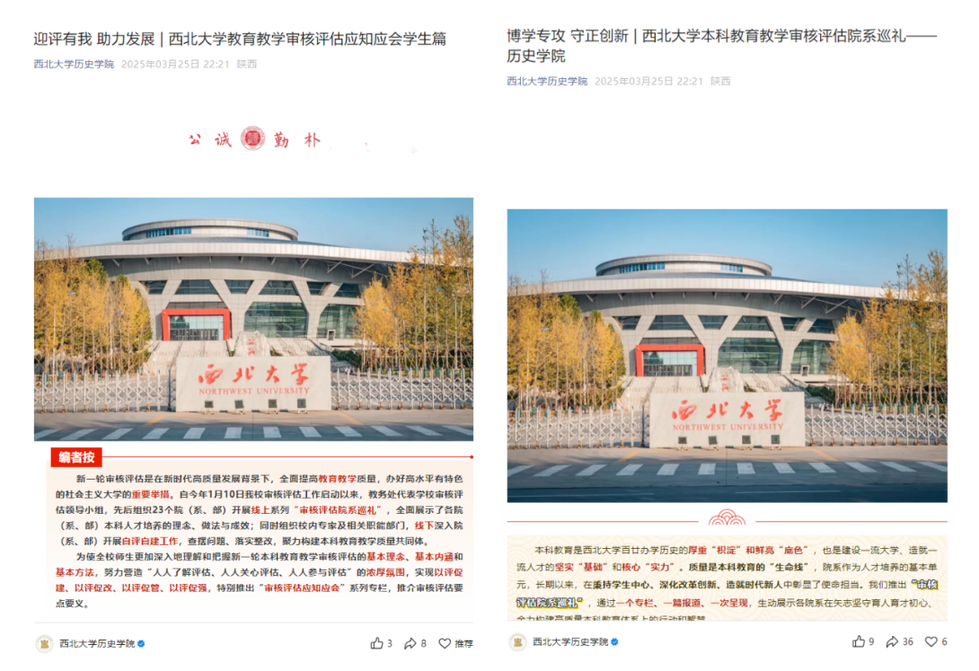 以“我为评估做贡献”主题活动为抓手,组织线上答题竞赛、宣传展板展示、评估知识宣讲等活动,帮助学生全面理解本科教育教学审核评估的意义与要求。引导学生以“主人翁”姿态参与评估工作,从课堂纪律、日常行为规范等细节入手,展现西大学子积极向上的精神风貌。