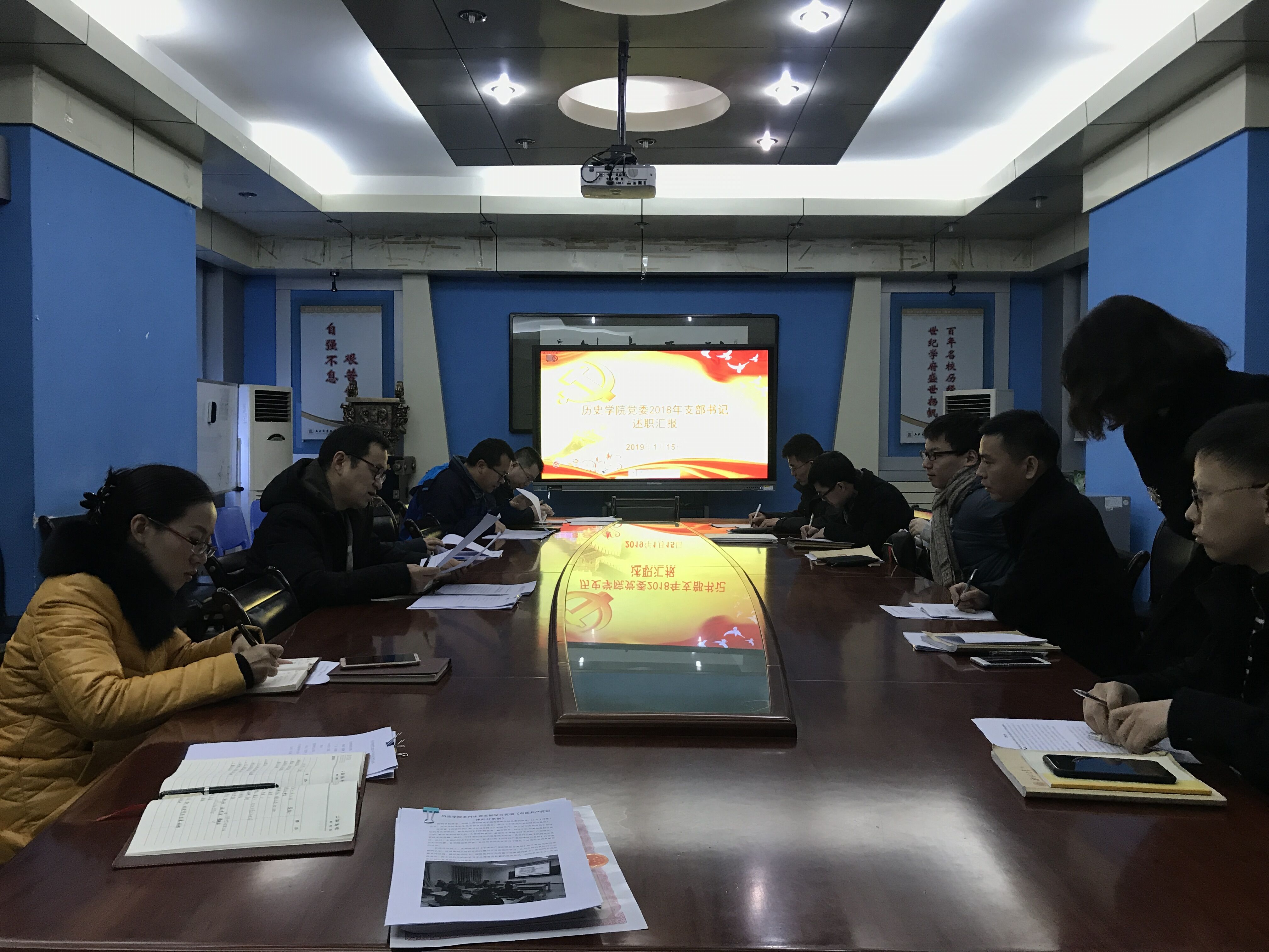 在本次会议中,各支部书记将2018年度本支部开展工作情况向学院党委做了述职汇报。在过去的一年,776net必赢官网党委各支部在党员教育与培养、制度建设等方面,通过开展丰富的支部活动,进一步增强了全体党员的爱党爱国意识,坚定了理想信念,提高了党性觉悟;通过常抓不懈的党风廉政建设,进一步筑牢我院党员拒腐防变的思想道德防线。