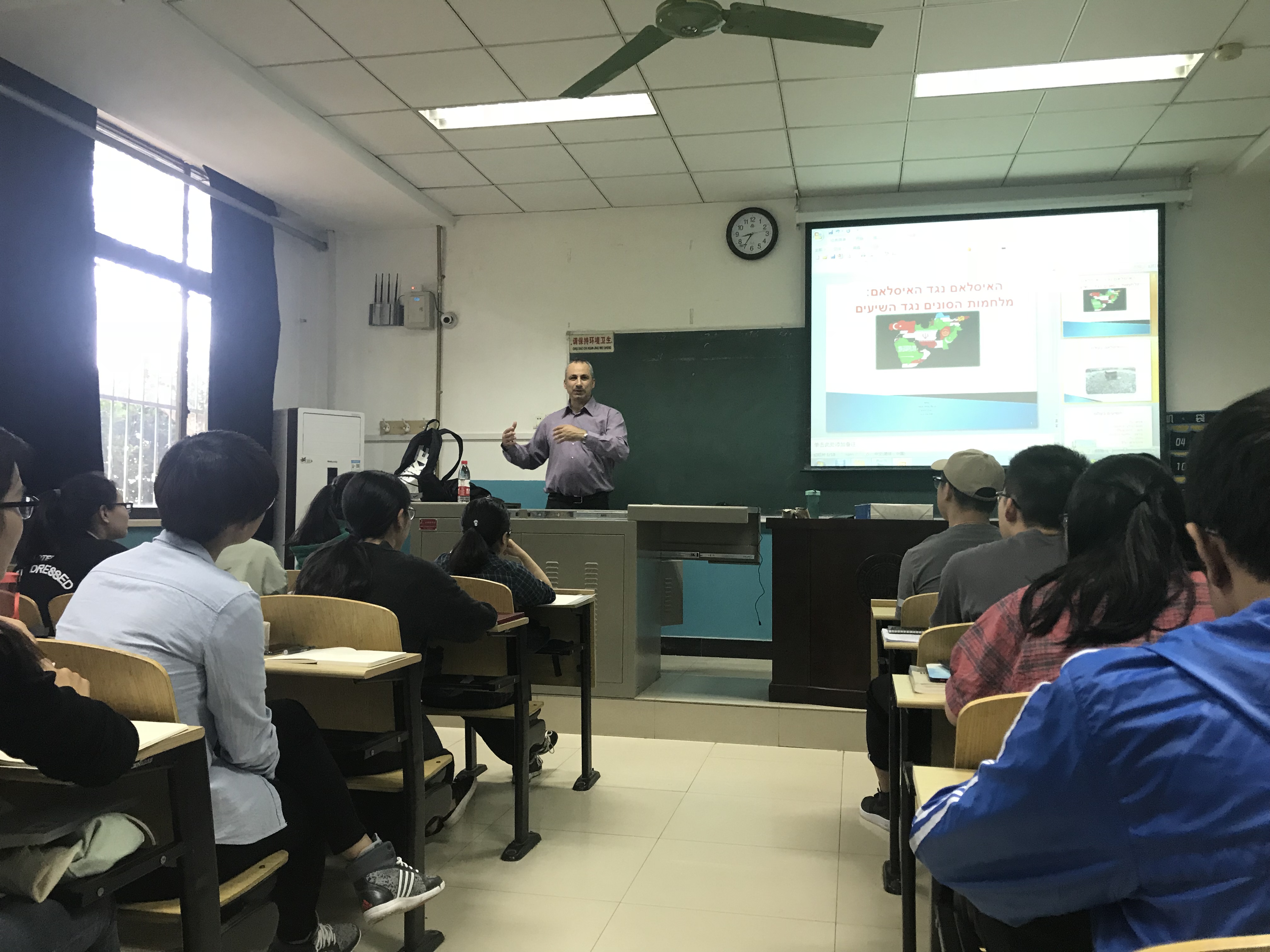 4月17日至20日,西北大学以色列研究中心、中以学术交流促进协会(SIGNAL)和西北大学国际交流与合作处共同主办的以色列研究系列讲座在我校举行。以色列巴伊兰大学梅纳赫姆·贝京抵抗运动研究中心博士后埃迪·科恩博士(Dr. Edy Cohen)作为嘉宾做了系列讲座。我校776net必赢官网、中东研究所的师生和外国留学生聆听了讲座。
