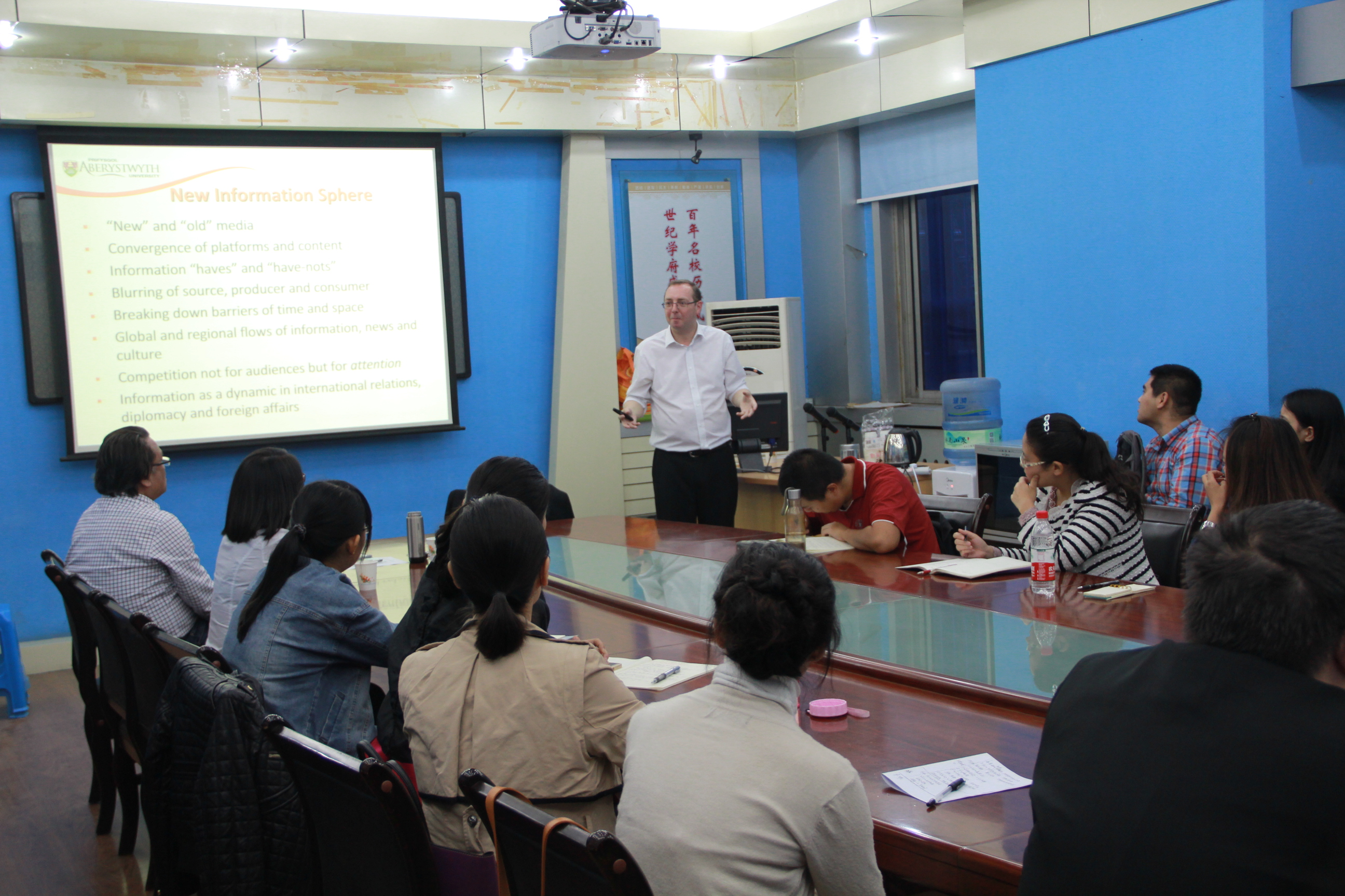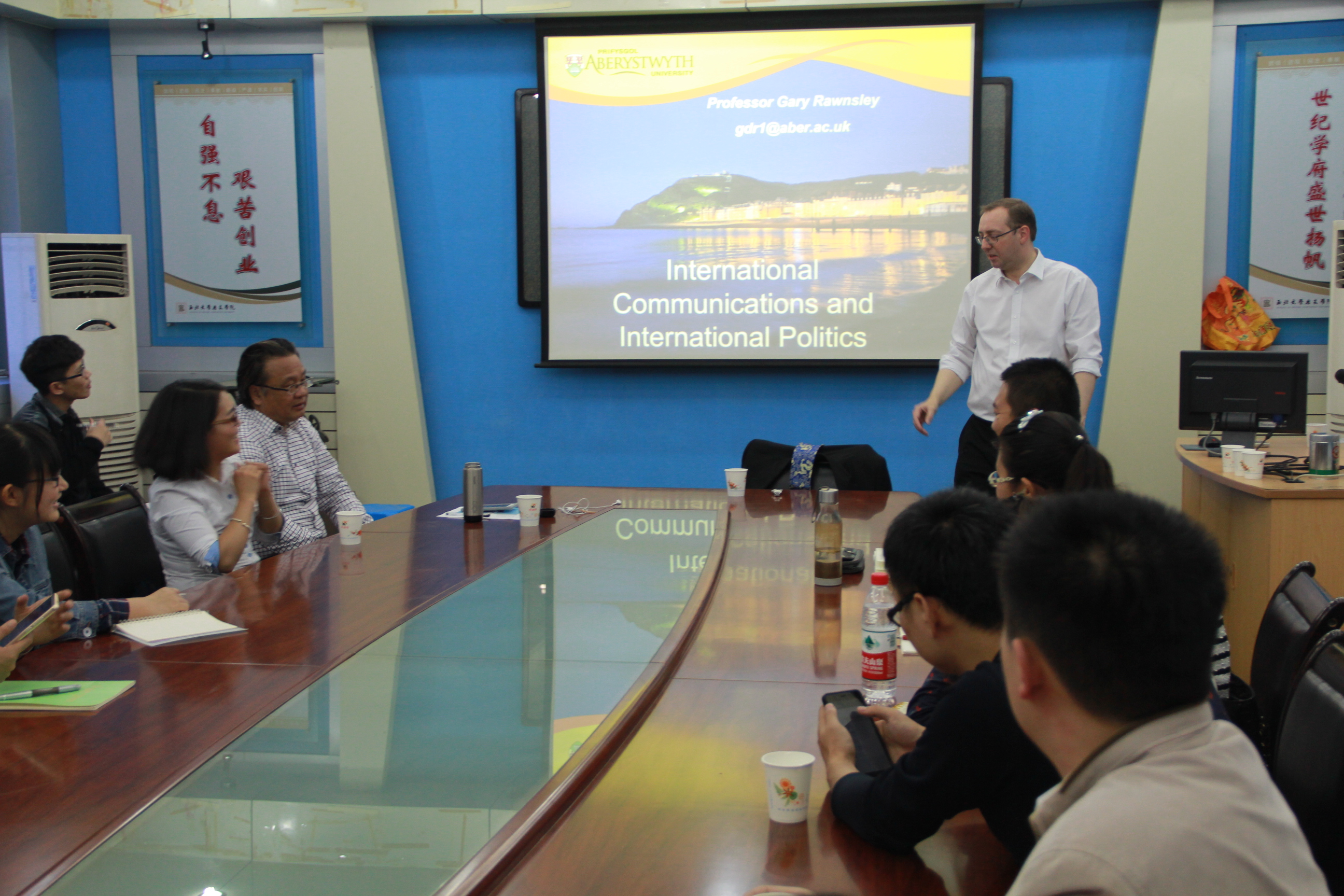 10月20-21日,英国威尔士大学亚伯(Aberyswyth University)加里·隆斯雷(Gary D Rawnsley)教授应西北大学776net必赢官网邀请,来我院交流访问,并于20日晚19:00-21:00、21日下午16:00-18:00分别做了题为“关于软实力的思考”(Reflections on soft power)和“国际传媒与当代国际政治”(International media and International Politics)两场学术报告,学院相关专业师生参加了报告会。